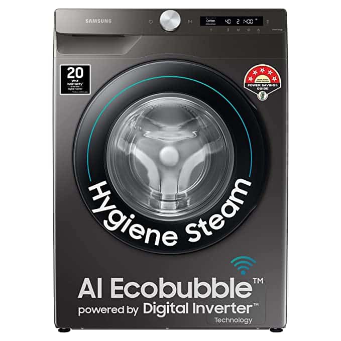 Samsung 8.0 kg Front Load Washing Machine (WW80T504DAB/IM) – AI Control, EcoBubble (Black)Appliance Type: Washing MachineLoad Type: Fully Automatic Fr...Washing Capacity (kg): 8Rs. 1,17,990View Details